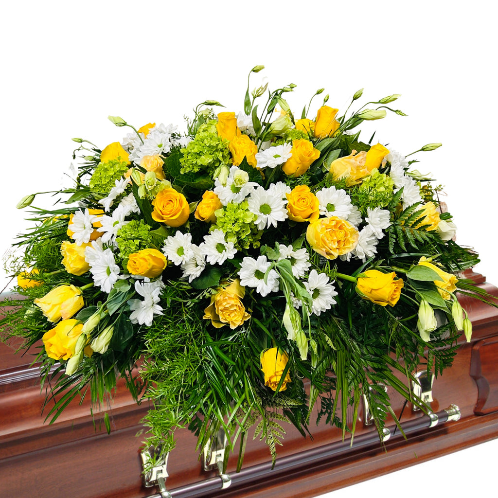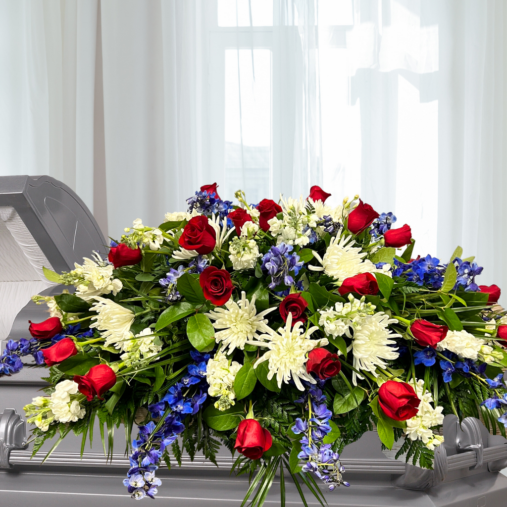 Casket Sprays are an expression of love. We can create a custom tribute to the life of your beloved by choosing a favorite color or a favorite flower combination. You might also like an option from our collection. Add a custom printed ribbon for your personal message. Casket sprays will be delivered at your specified time and to your chosen place for the service.