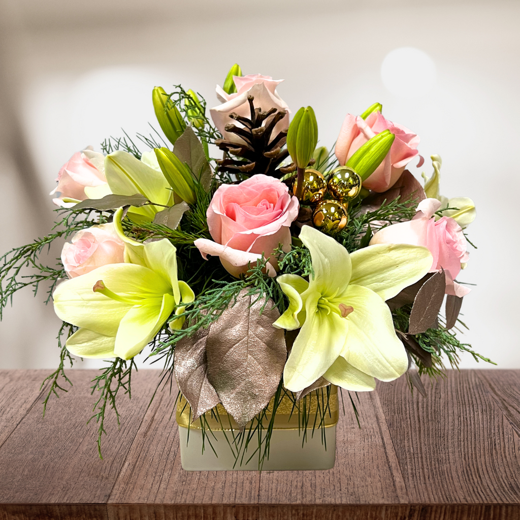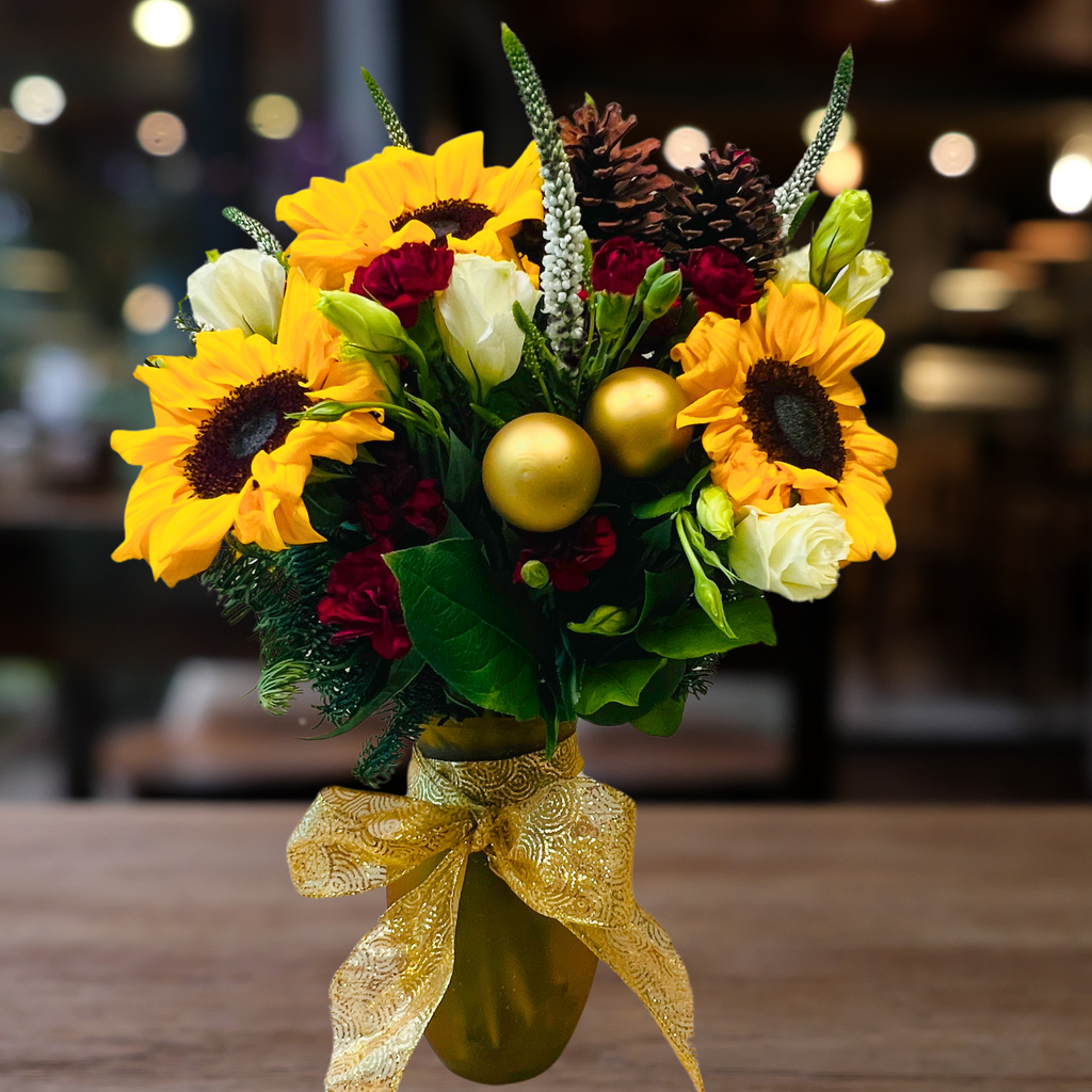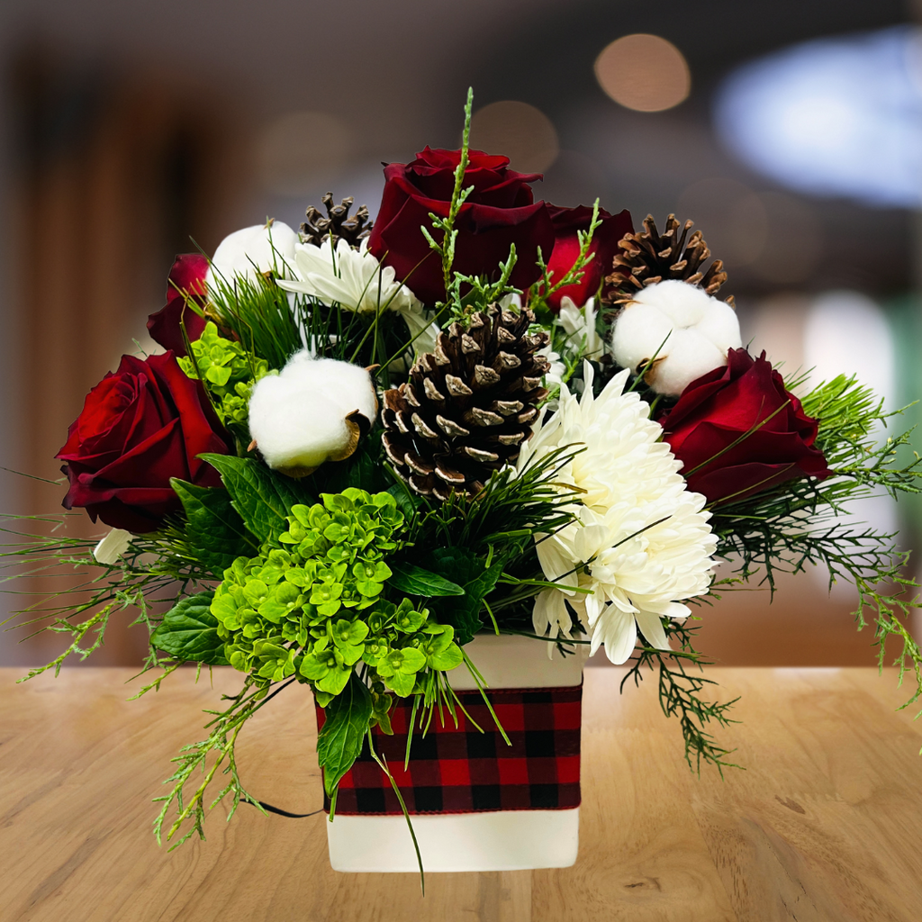 Let the Christmas season warm your heart and the hearts of many. Festive Christmas flowers bring tidings of love, joy and good will. A Christmas centerpiece on your family table or friends table will make for a merry gathering.