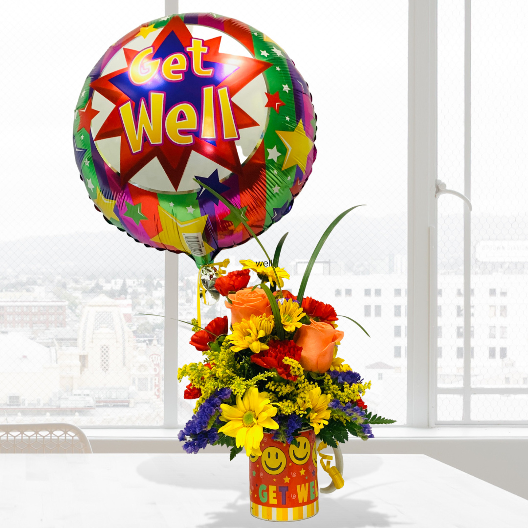 A bright combination of fresh florals arrangement with an 18" mylar helium balloon to send your well-wishes and cheer to someone who could use this uplifting gift.
