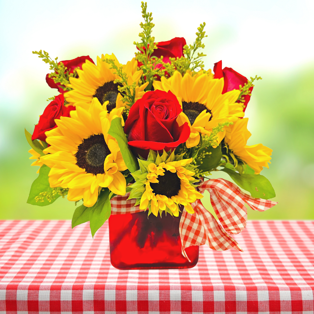 It's summer and officially open season for beautiful outdoor celebrations and adventures. So, venture out to your local park or backyard for a picnic with this radiant design, bursting with sunflowers as its centerpiece, and celebrate a special someone.