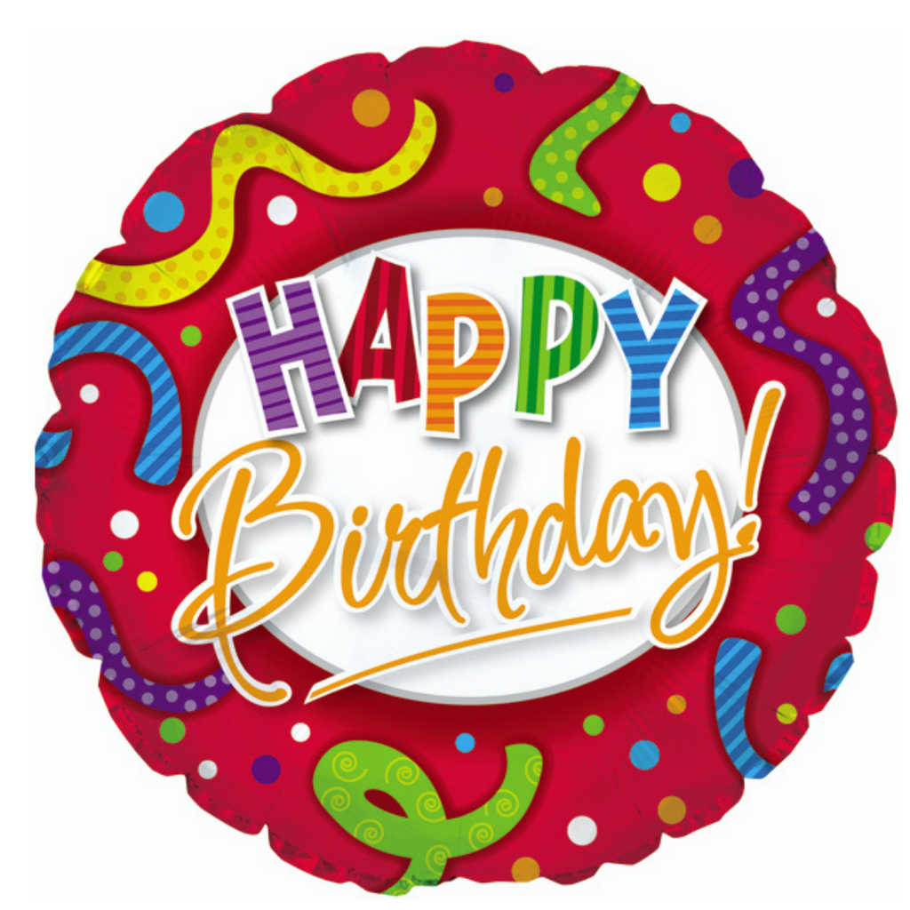 # 8 Happy Birthday Red Stripes and Dots Balloon